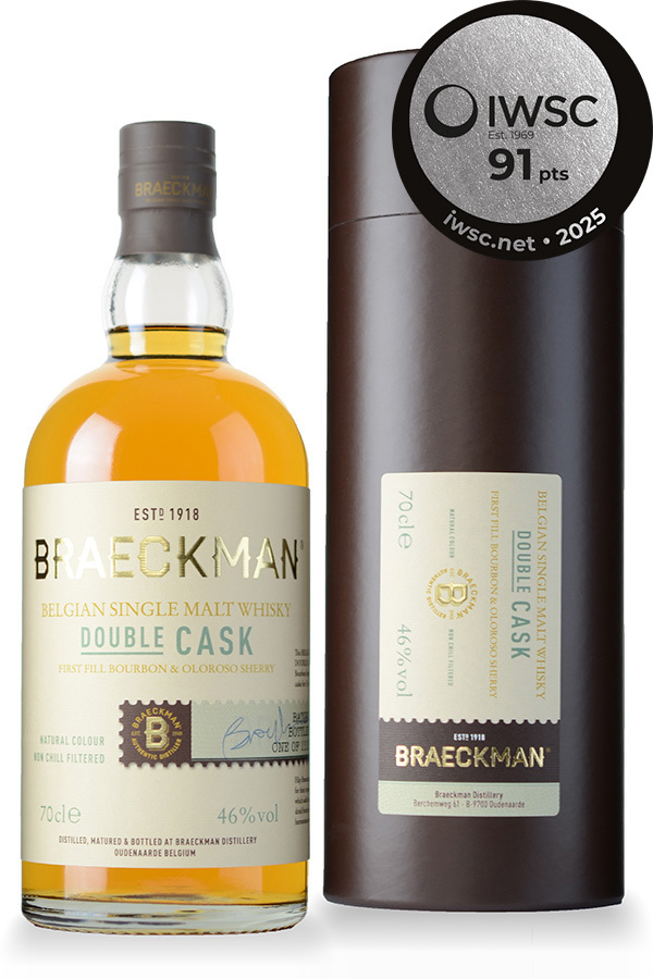 Braeckman Single Malt - Double Cask matured for 3 to 6 years in first-fill bourbon barrels and Oloroso sherry casks.